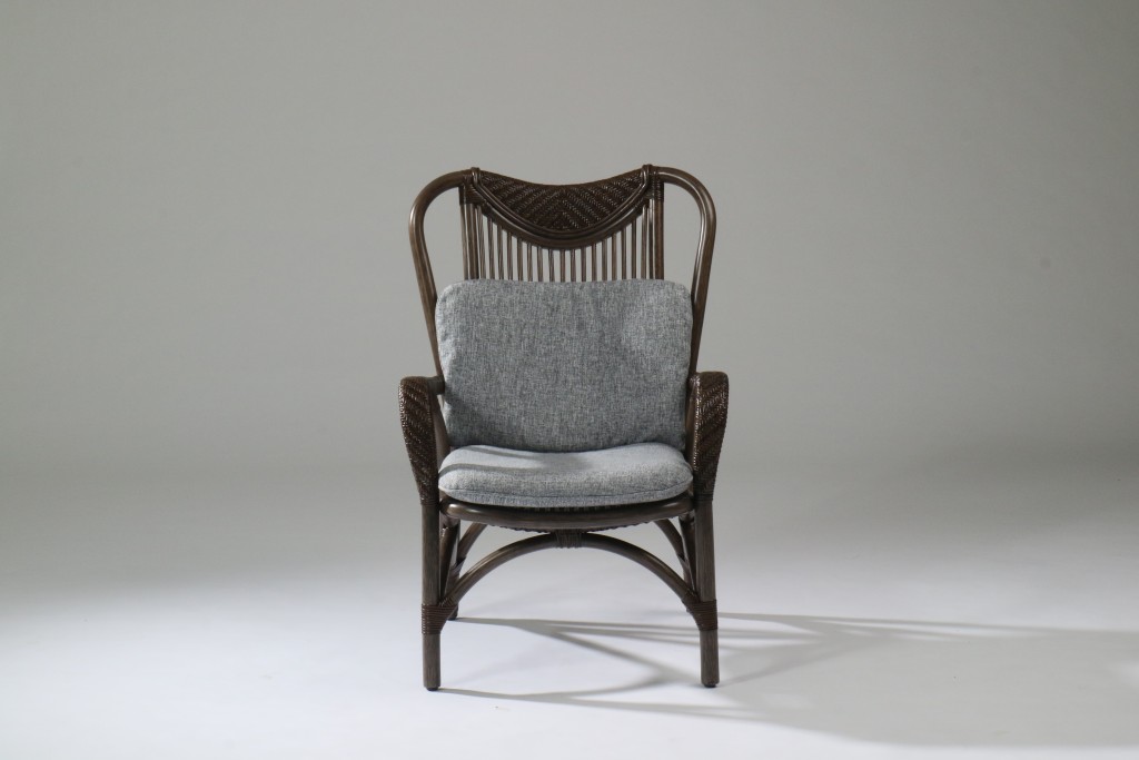 少しゆったりめでジャストフィットする座り心地。トラス構造で組まれたベースラインから続く肘部と背のトップに三日月型に網代で編み込んでアクセントを施したパ ーソナルチェアです。